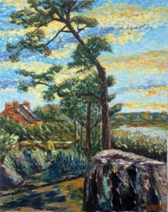 Paimpol ligt aan een baai aan de noordkust van les Côtes-d’Armor. Ik werd getroffen door de wijze waarop het licht in de namiddag en vroege avond het landschap kleurde. In een impressionistische stijl heb ik dit schilderij ter plekke in 5 dagen tijd kunnen schilderen. Eerst heb ik een schets gemaakt in bruintinten met pastelkrijt. Daarna de schets als onderschildering met acrylverf op het paneel vastgelegd. De olieverf is vervolgens met schildersmessen opgebracht.